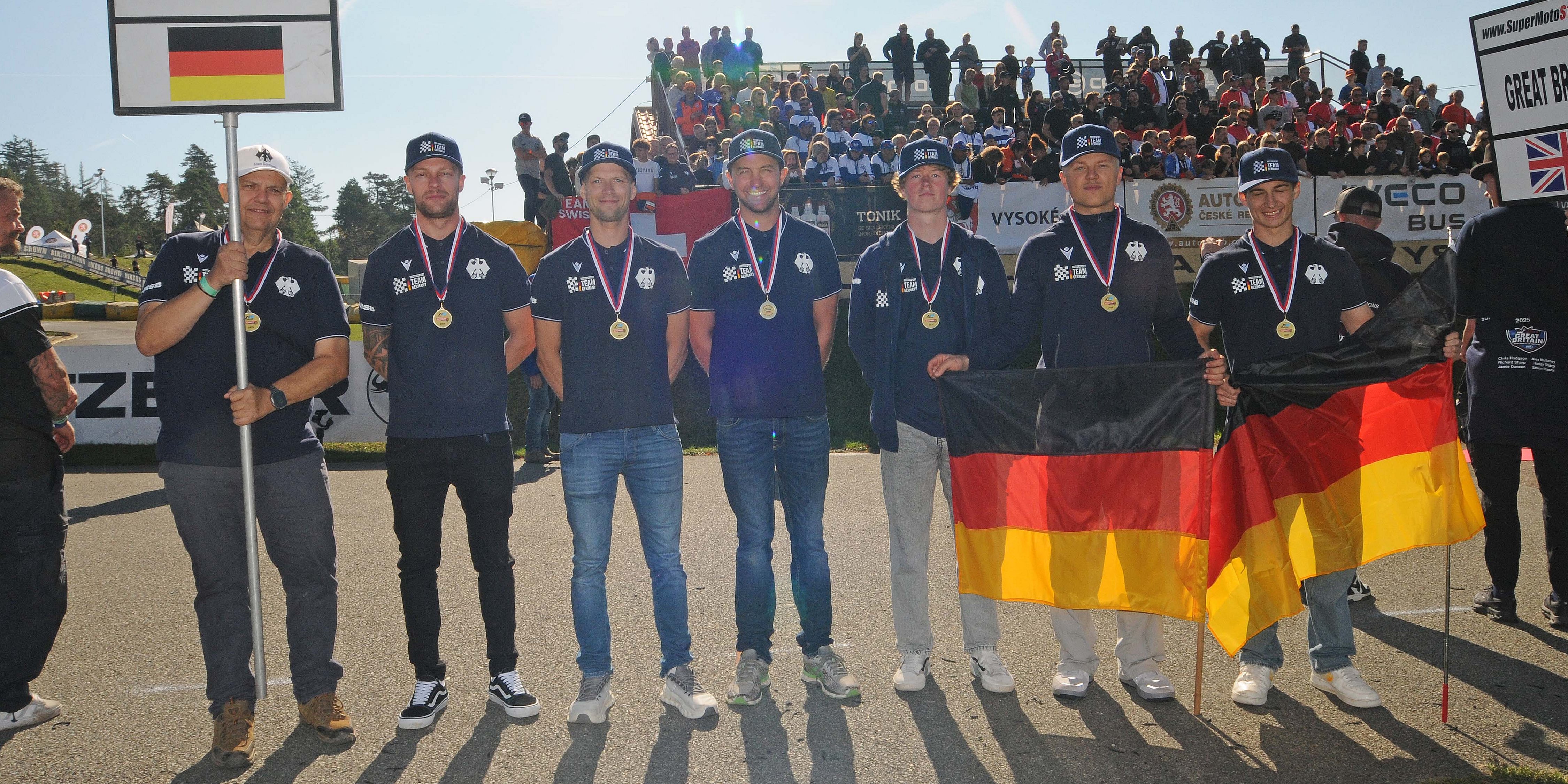 Vorausgegangen waren der Party auf der Tribüne drei Rennen, die es in sich hatten. Weltmeister Marc-Reiner Schmidt hatte in seinem ersten Lauf einen souveränen Sieg eingefahren. Jan Deitenbach lieferte grandios ab und wurde starker Fünfter. Im zweiten Rennen des Tages konnte KTM-Pilot Deitenbach nochmals glänzen, wurde mit einem Kraftakt Sechster. Pech dagegen hatte Marcus Class, der in seinem ersten Rennen des Tages unfreiwillig das Streichergebnis des Teams produzierte. Ihm war in der ersten Runde die Kette abgesprungen, Class blieb komplett ohne Wertung.