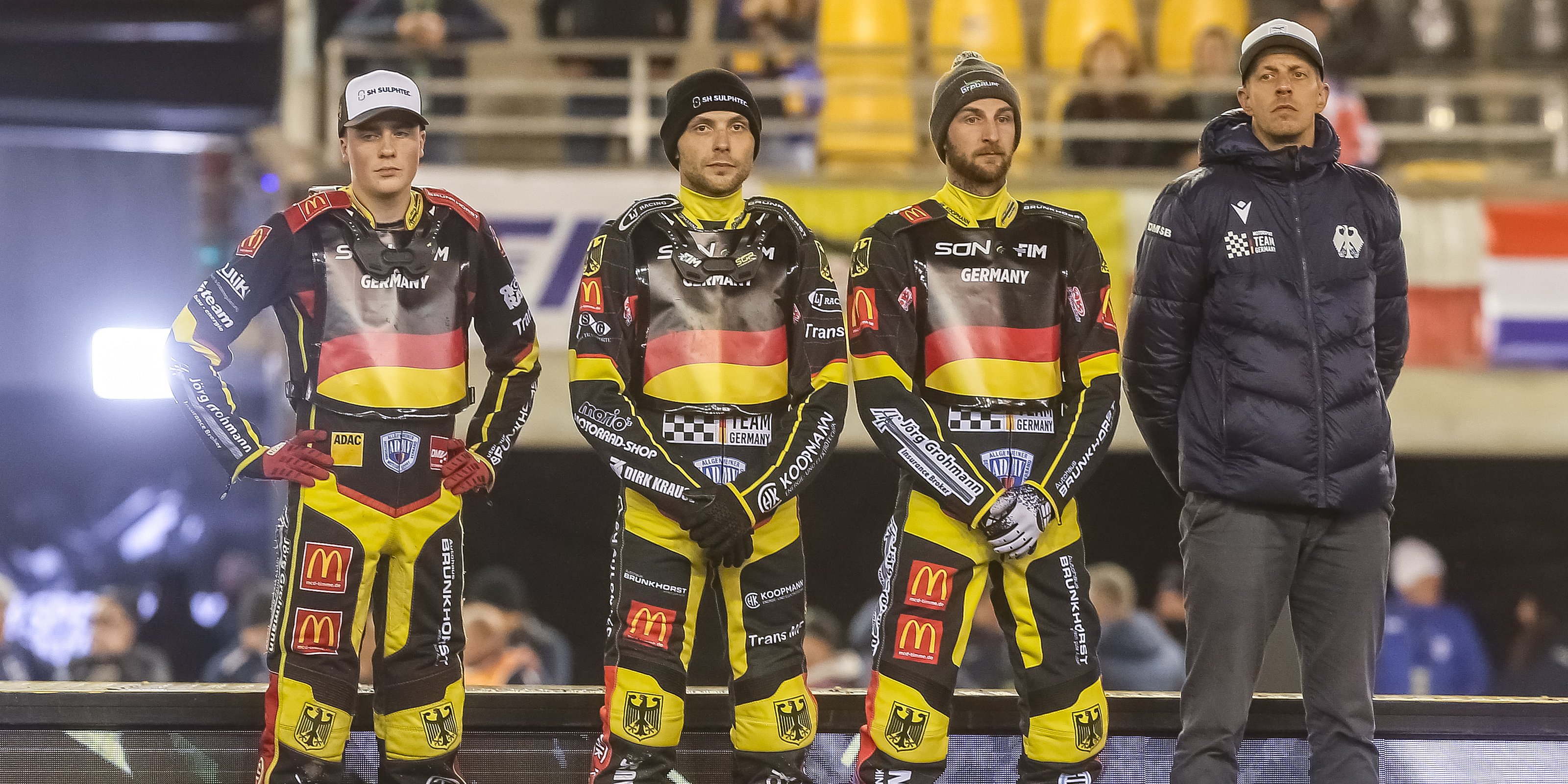 Der Abend begann fulminant mit einem Laufsieg gegen Italien und das Duo Kai Huckenbeck und Norick Blödorn schrieben die ersten sieben Punkte. Im zweiten Lauf des deutschen Teams hieß der Gegner Norwegen. Mit fünf Punkten durch Huckenbeck auf Platz zwei und Blödorn auf Platz drei gab es hier erneut einen Vorteil für Deutschland, auch wenn Pollestad den Laufsieg holte. Dieses Ergebnis erwies sich im weiteren Verlauf des Abends aber noch als entscheidend. Im dritten Lauf wartete Lettland. Andzejs Lebedevs ging kurz nach dem Start in Führung, Huckenbeck kam auf Platz zwei ins Ziel und Blödorn blieb auf Platz vier abgeschlagen. In der Gesamtwertung rangierte die deutsche Mannschaft mit 15 Punkten auf Rang drei nach drei Läufen. Zur Halbzeit lag man also auf Kurs in Richtung Finale. Die Schwergewichte warteten allerdings noch auf das Team von Mathias Bartz: „Schweden und England waren auf dem Papier im Vorfeld sicherlich die größten Brocken.“